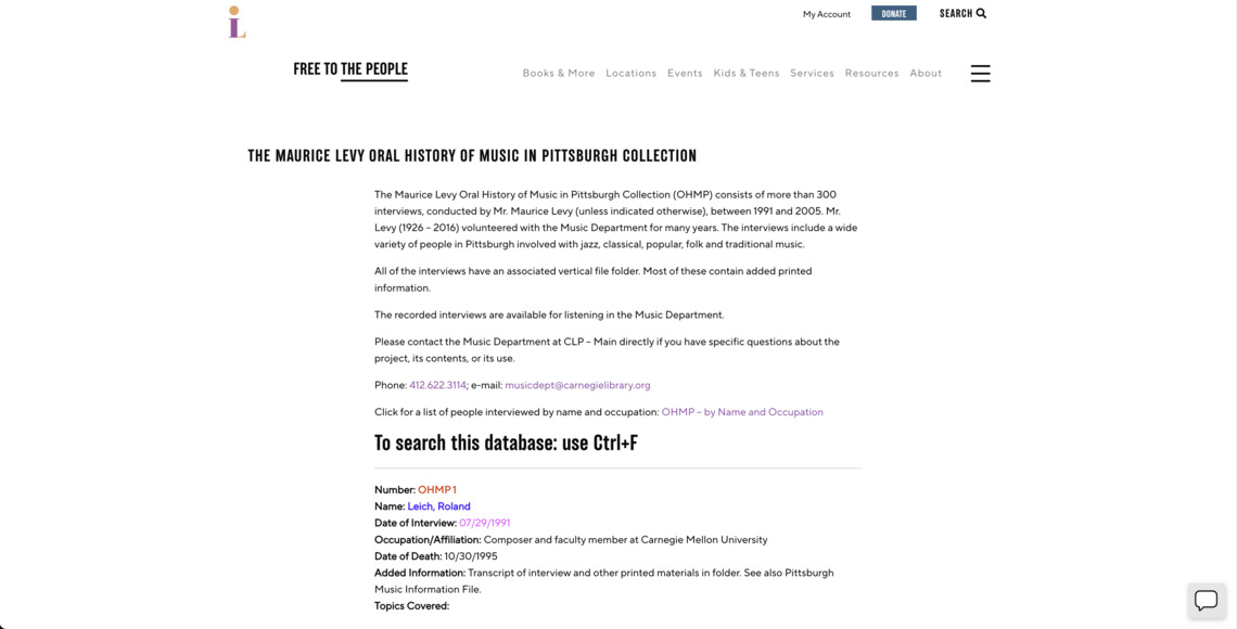 Oral History of Music in Pittsburgh